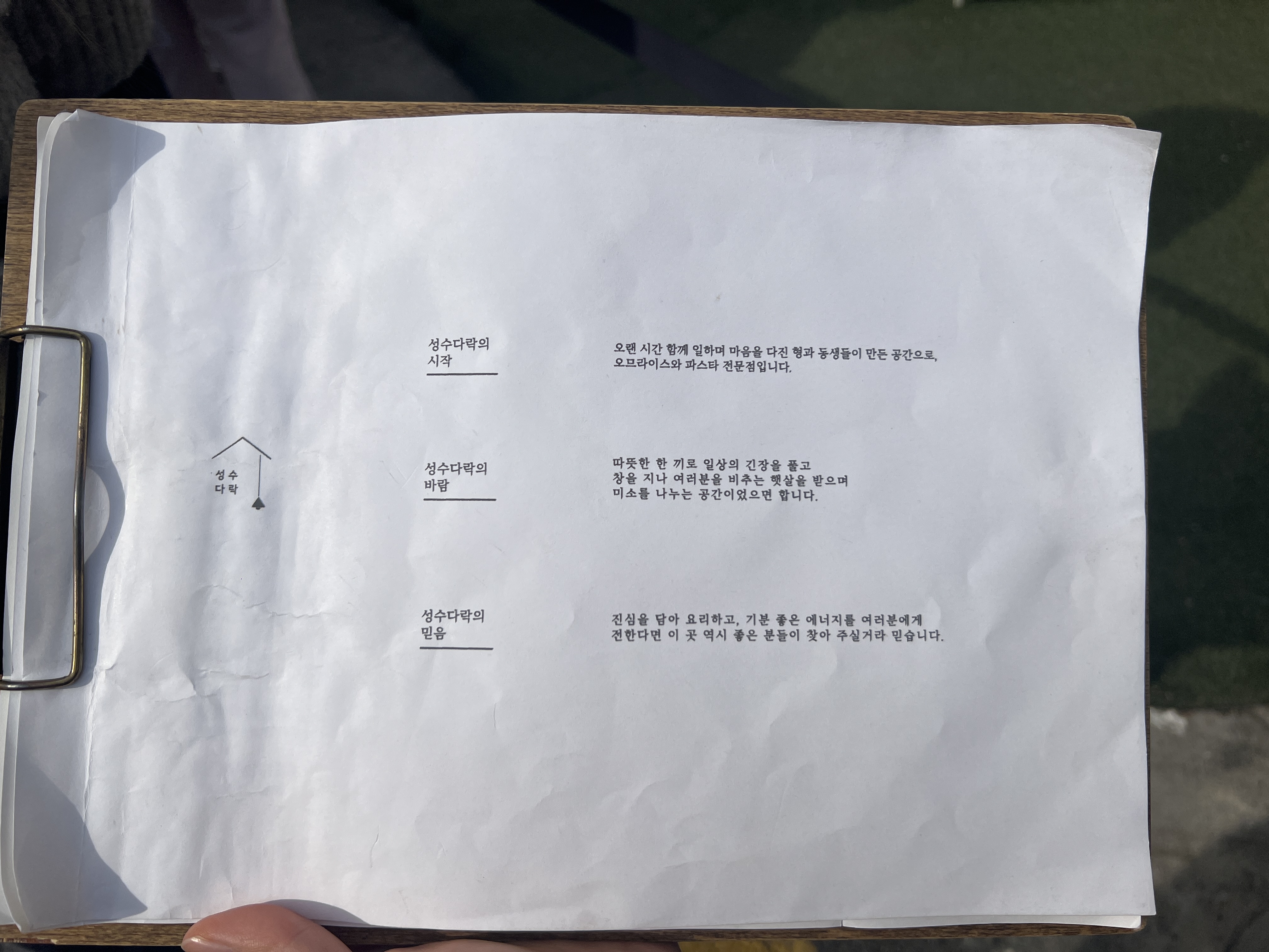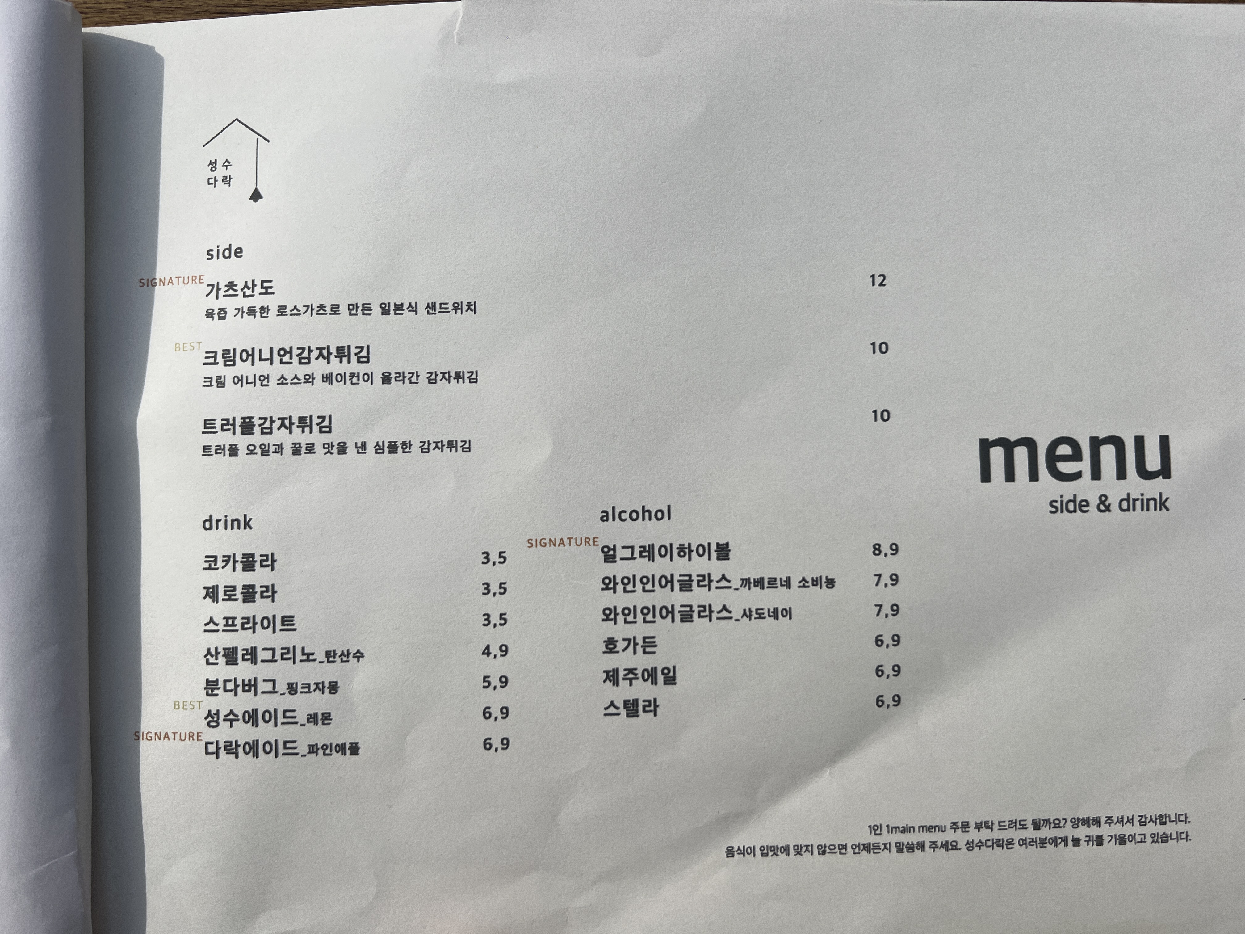 성수 다락 메뉴판