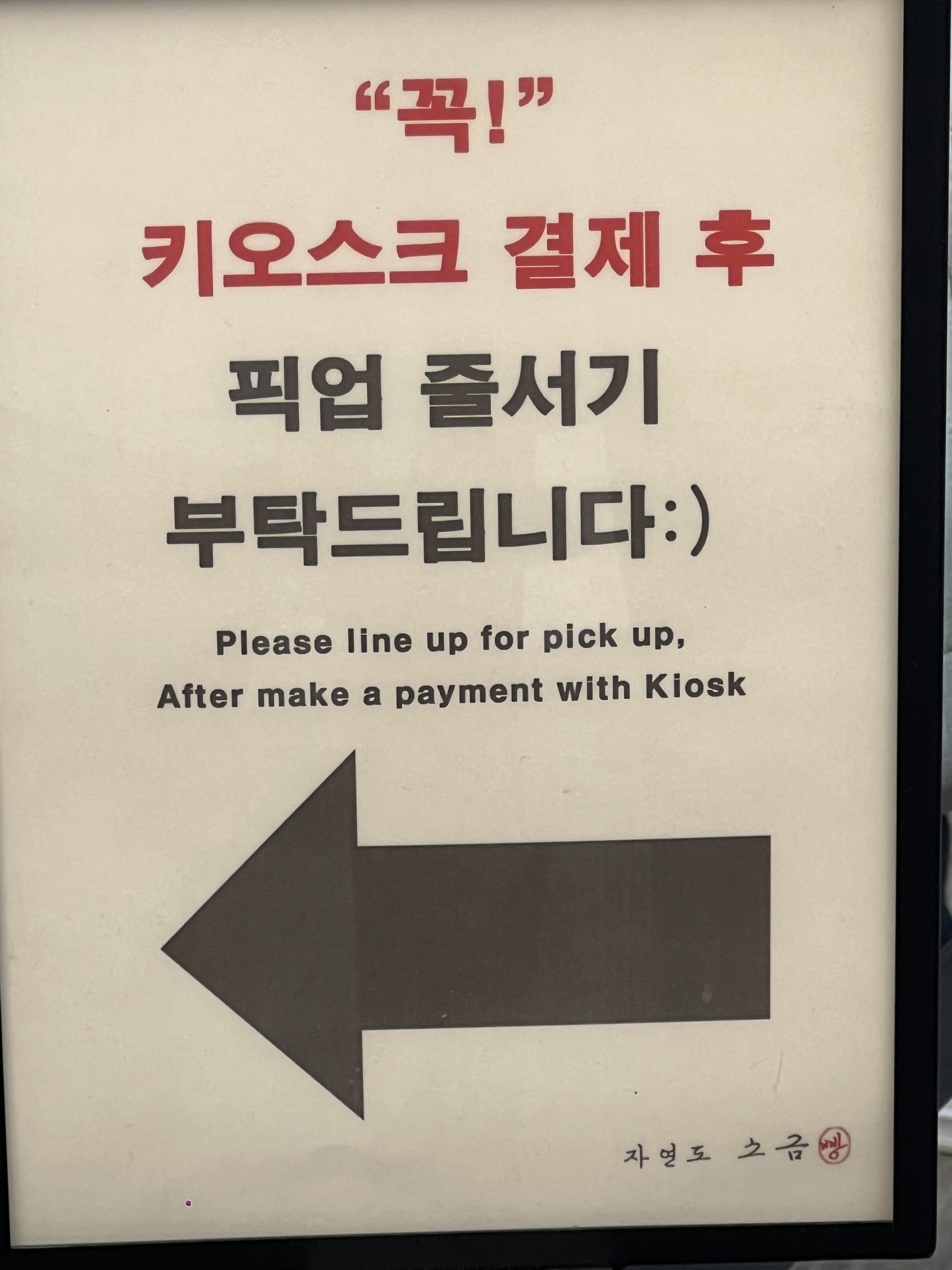 매장을 바라보고 있는 기준 오르쪽에 있는 키오스크에서 먼저 결제를 한다.