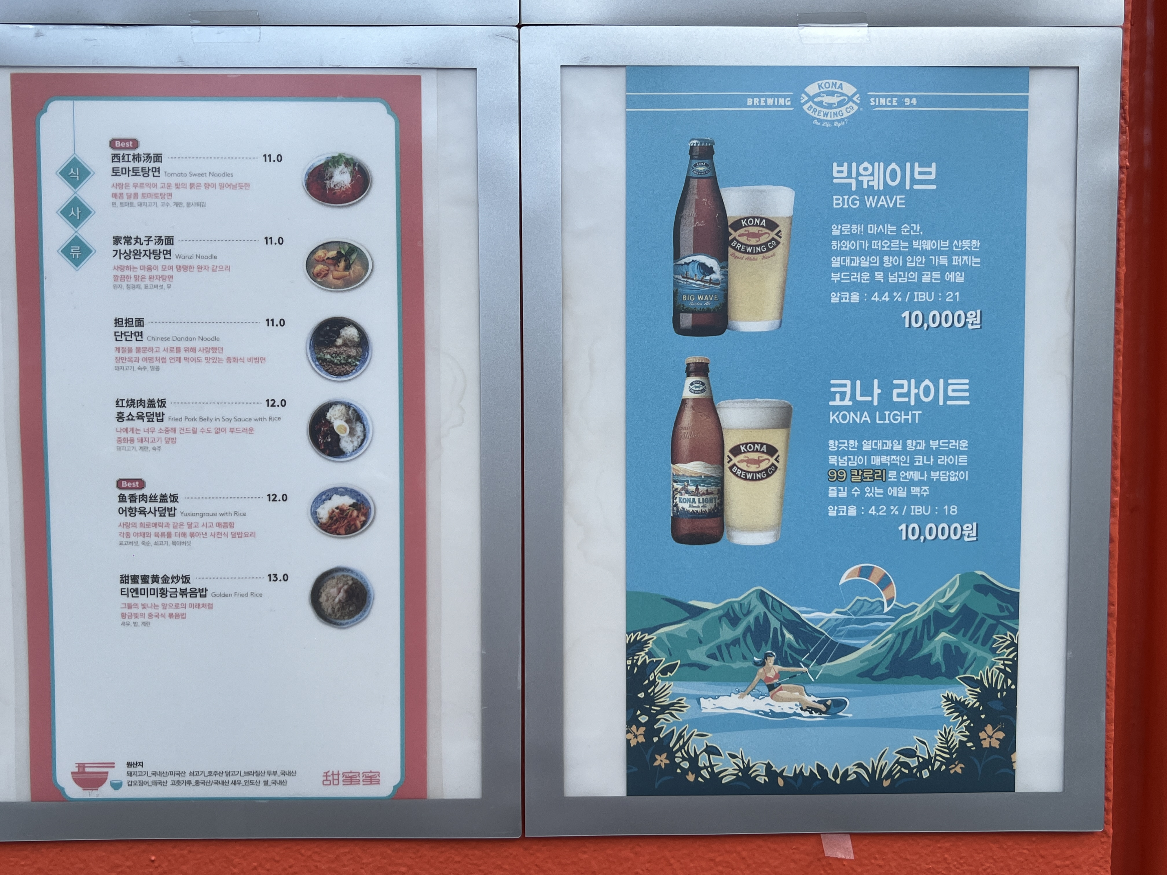 티엔미미 메뉴판