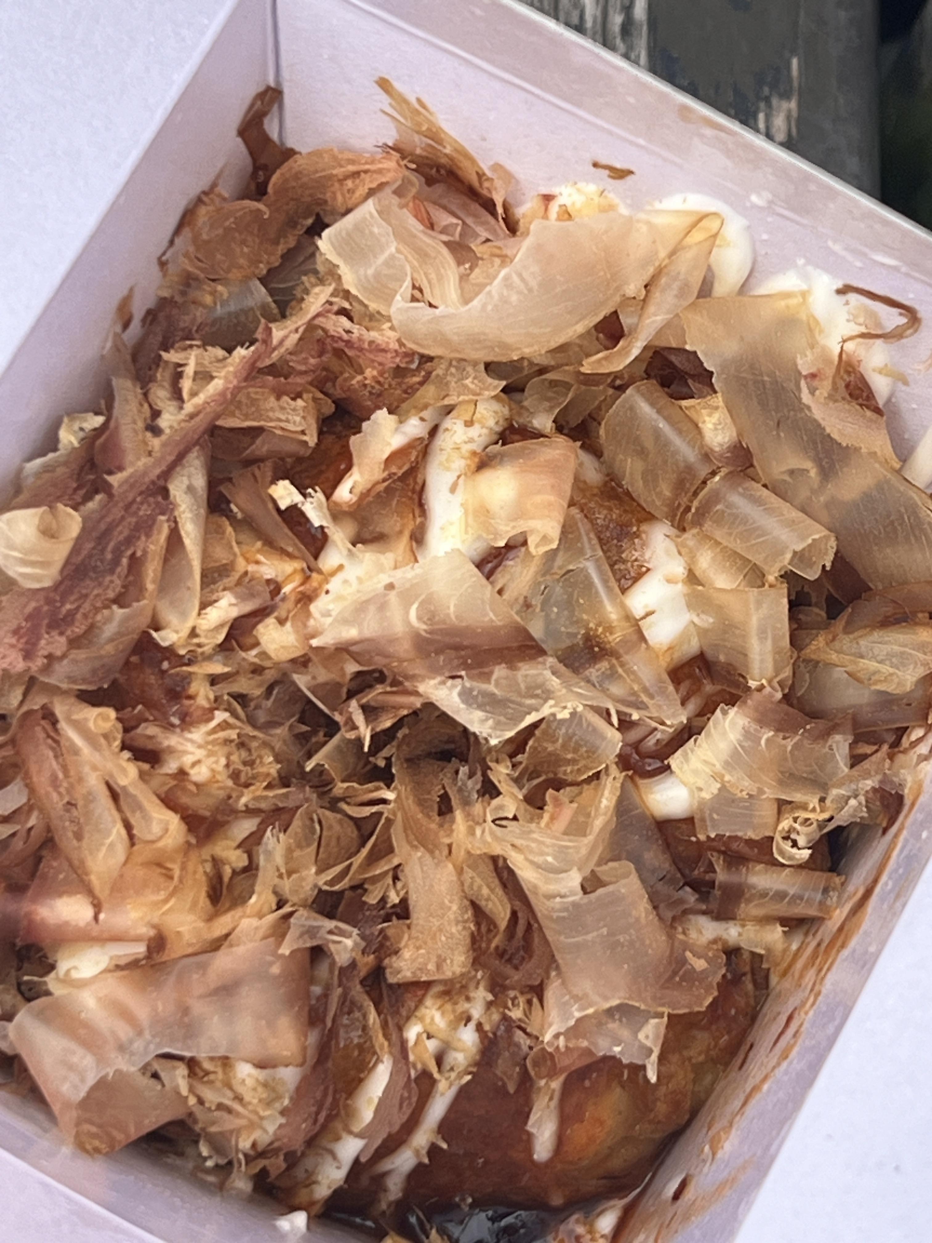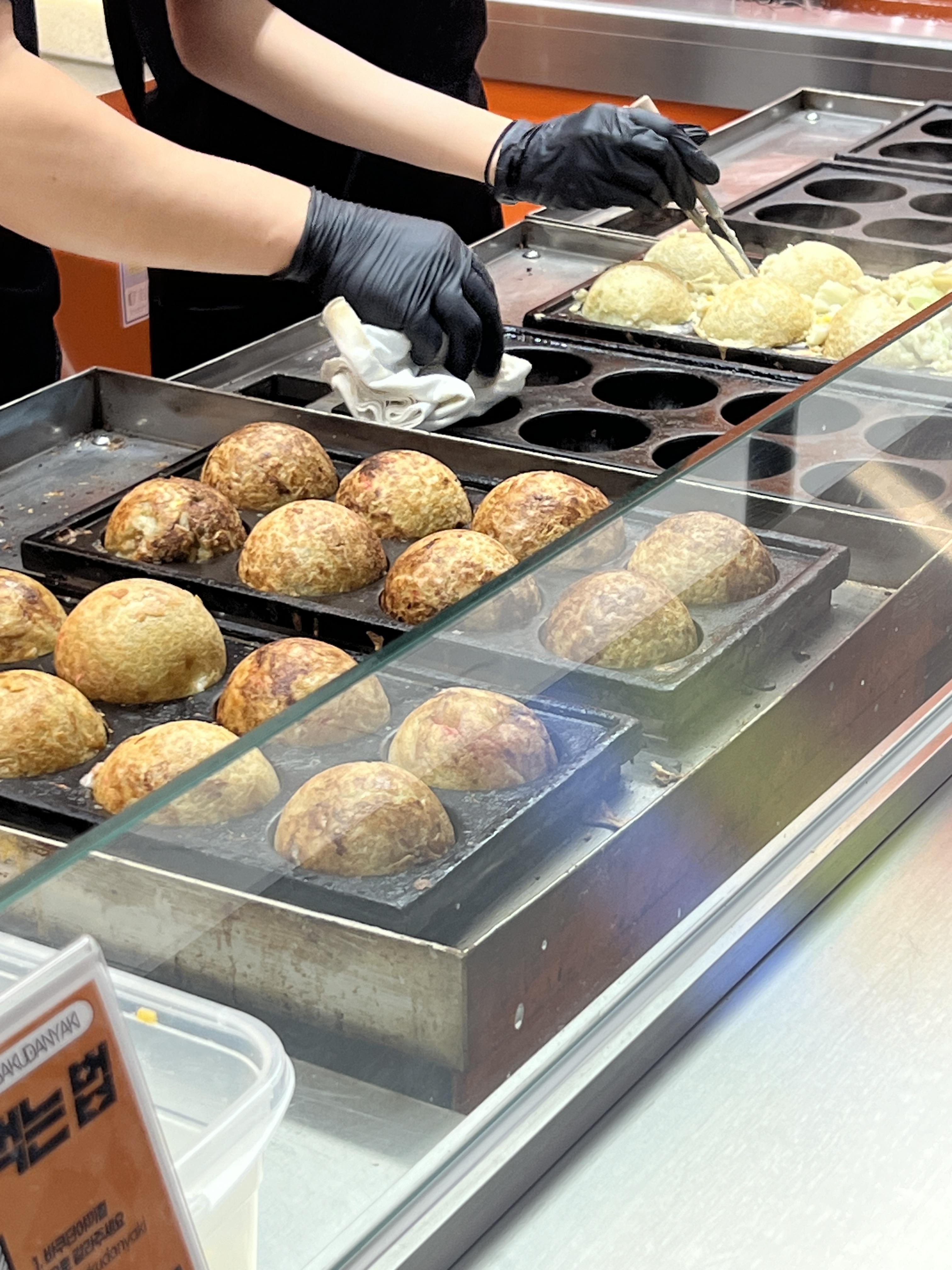 웨이팅도 아직 ㅁ낳이 남았고 배가 고파서 옆에 보이는 대왕 타코야끼 하나를 나눠 먹기로 했다.