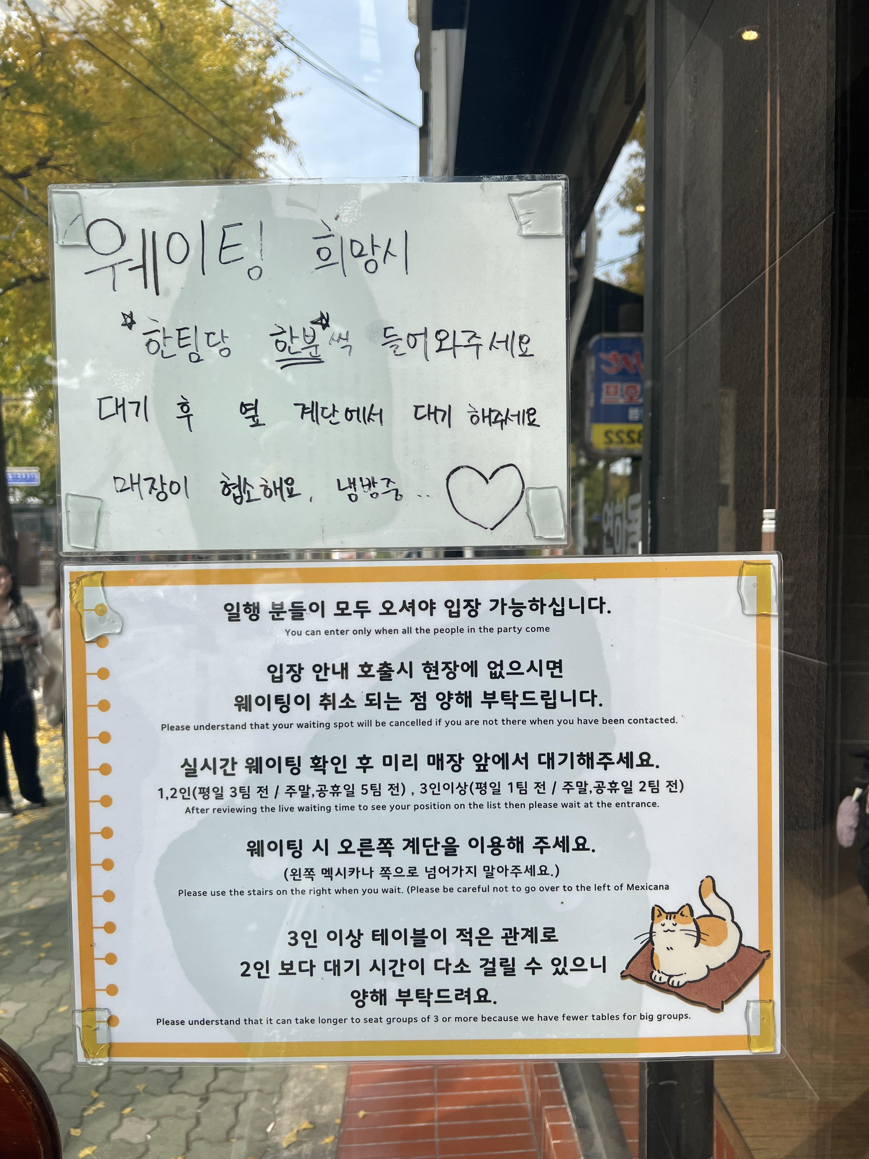 웨이팅을 원하면 팀당 한 명이 가게 1층 안으로 들어가 대기를 걸어놓으면 된다!