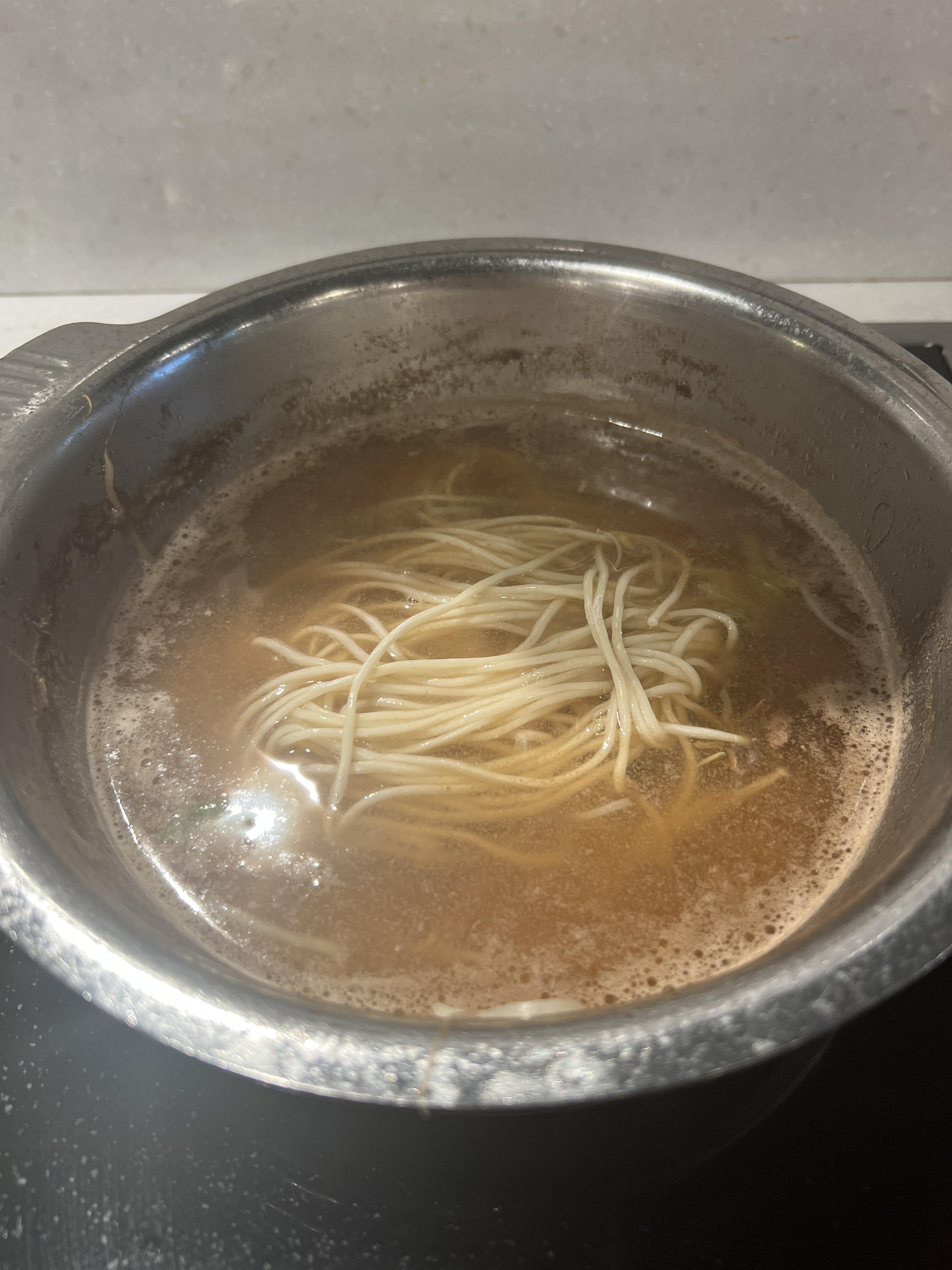 잘 우러난 육수에 면을 넣고 끓이면 걸쭉해지며 면에 육수가 베이면서